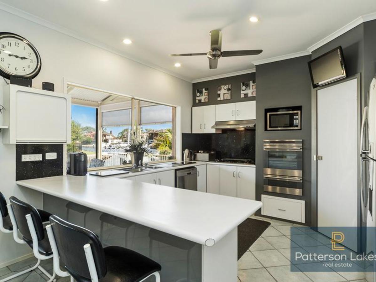 Family living and dining is beautifully catered for with ample space to spread out, relax and unwind, while a terrific all-weather alfresco entertaining room complete with barbecue kitchen overlooks boats bobbing on the water nearby.