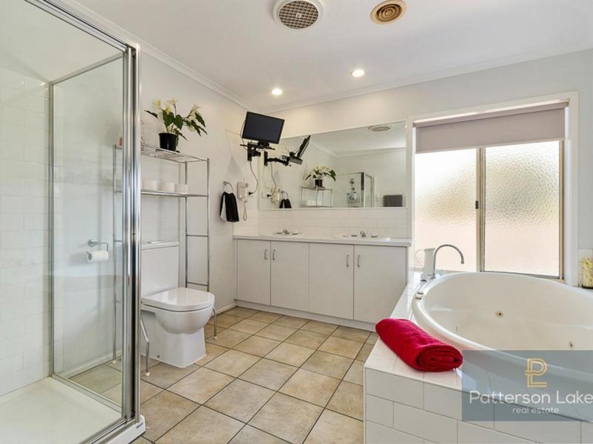 Extras here include ducted heating/cooling, reverse-cycle airconditioning, gas log fire, ceiling fans, security shutters, ducted vacuum, alarm system, mains gas to BBQ area, RWT, internal entry to double auto garage plus additional off-street parking.