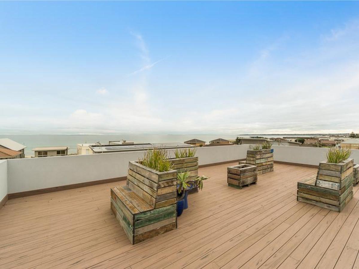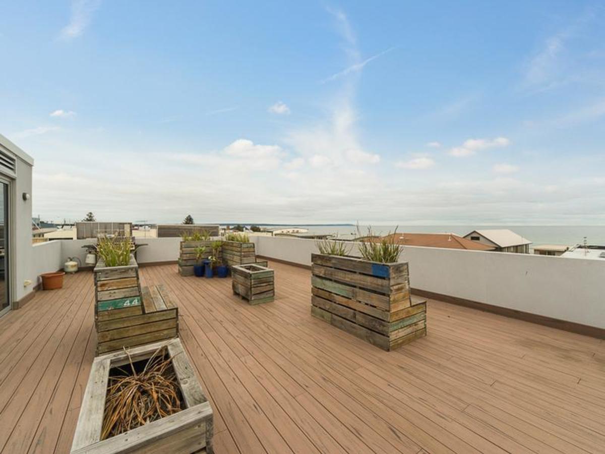 An amazing communal rooftop garden for relaxing and entertaining with amazing views across the bay to Melbourne and beyond you might even see the dolphins that frolic the bay